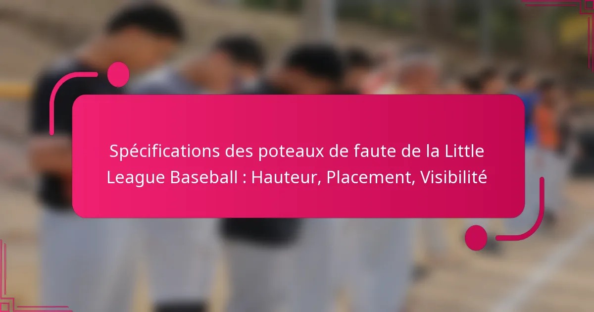 Les poteaux de faute de baseball de la Little League sont essentiels pour définir les limites du terrain de jeu, mesurant généralement entre 3 et 4,5 mètres de hauteur pour une visibilité optimale. Leur placement stratégique améliore la sécurité et garantit que les joueurs ainsi que les spectateurs peuvent facilement identifier le territoire de faute. De plus, des facteurs tels que la couleur et l’éclairage sont cruciaux pour maximiser la visibilité, faisant des poteaux de faute un élément vital du jeu.