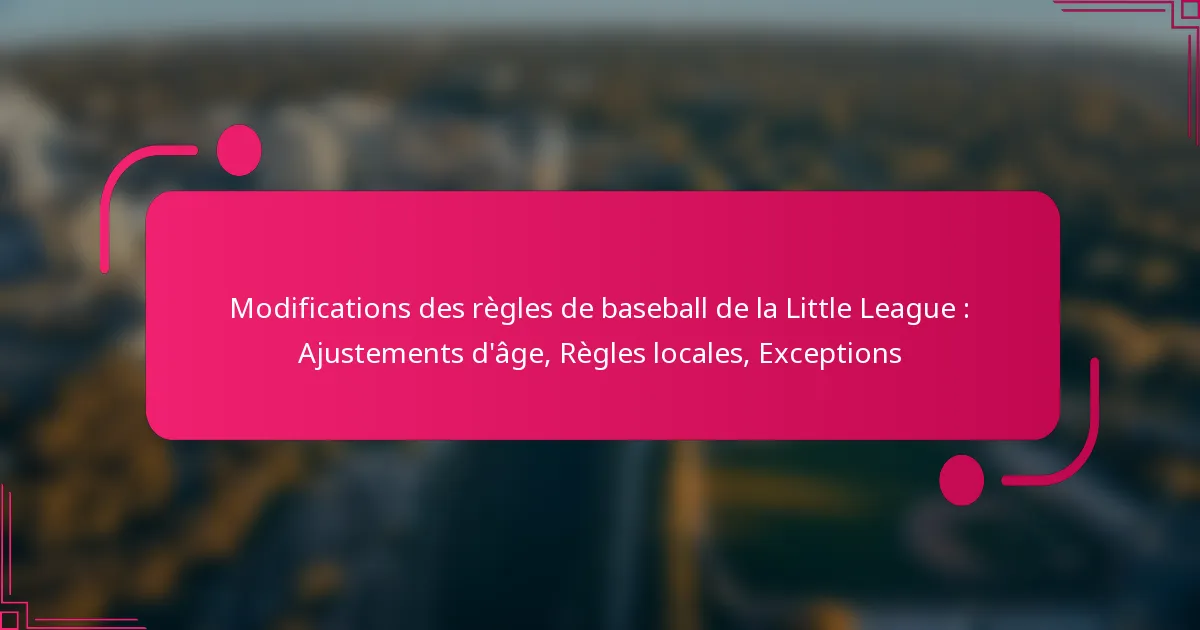 Les ajustements d’âge, les règles locales et les exceptions dans la Little League Baseball influencent considérablement l’éligibilité et la participation des joueurs. Comprendre comment ces éléments interagissent est crucial pour les entraîneurs, les parents et les joueurs afin de naviguer efficacement dans la ligue.