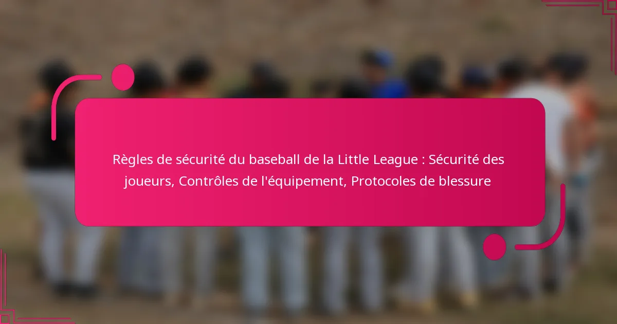 Assurer la sécurité des joueurs dans le baseball de Little League est primordial, en mettant l’accent sur l’utilisation appropriée de l’équipement et le respect des consignes de jeu sécuritaires. Des contrôles réguliers de l’équipement sont essentiels pour prévenir les blessures et maintenir la conformité avec les normes de la ligue. De plus, des protocoles de gestion des blessures établis offrent des réponses efficaces et un soutien aux jeunes athlètes, favorisant un environnement sûr pour tous les participants.