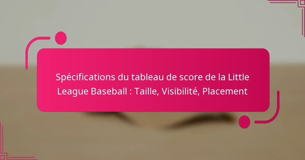 Quelles sont les spécifications clés pour les tableaux de marque de baseball de la Little League ?